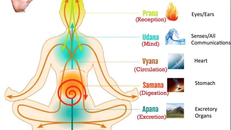 Udana Vayu : Responsable du mouvement vers le haut et de l’expression, Udana réside dans la gorge. Il influence la parole, les émotions et le mouvement des bras.